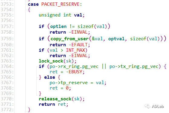 ÓÉÓÚmacoff¡¢netoffÒÔ¼°maclen±»½ç˵Ϊunsigned shortÀàÐÍ£¬×î´óֵΪ0xffff¡£¶øtp_reserve±»½ç˵Ϊunsigned intÀàÐÍ£¬×î´óֵΪ0xffffffff£¬²¢ÇÒ¾Þϸ¿ÉÒÔͨ¹ýsetsockopt()º¯Êý¾ÙÐÐÉèÖã¬ÈçÏ´úÂëËùʾ£º