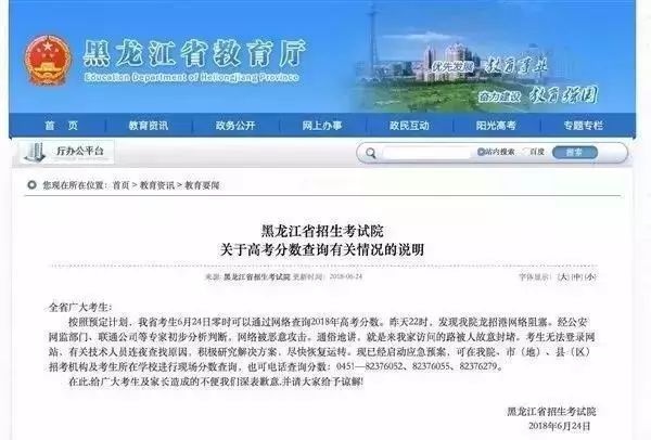 ƾ֤Ԥ¶¨ÍýÏ룬ÎÒÊ¡¿¼Éú6ÔÂ24ÈÕÁãʱ¿ÉÒÔͨ¹ýÍøÂçÅÌÎÊ2018Äê¸ß¿¼·ÖÊý¡£×òÌì22ʱ£¬·¢Ã÷ÎÒÔºÁúÕиÛÍøÂçÛÕ±Õ¡£¾¹«°²Íø¼à²¿·Ö¡¢ÁªÍ¨¹«Ë¾µÈר¼ÒÆðÔ´ÆÊÎöÅжϣ¬ÍøÂç±»¶ñÒâ¹¥»÷¡£Í¨Ë׵ؽ²£¬¾ÍÊÇÀ´ÎÒ¼Ò»á¼ûµÄ·±»È˾ÓÐÄ·â¶Â¡£¿¼ÉúÎÞ·¨µÇÂ¼ÍøÕ¾£¬ÓйØÊÖÒÕÖ°Ô±Á¬Ò¹²éÕÒÔµ¹ÊÔÓÉ£¬Æð¾¢Ñо¿½â¾ö¼Æ»®£¬¾¡¿ì»Ö¸´ÔËת¡£ÏÖÒѾÆô¶¯Ó¦¼±Ô¤°¸£¬¿ÉÔÚÎÒÔº¡¢ÊУ¨µØ£©¡¢ÏØ£¨Çø£©Õп¼»ú¹¹¼°¿¼ÉúËùÔÚѧУ¾ÙÐÐÏÖ³¡·ÖÊýÅÌÎÊ£¬Ò²¿Éµç»°ÅÌÎÊ·ÖÊý£º0451¡ª82376052¡¢82376055¡¢82376279¡£